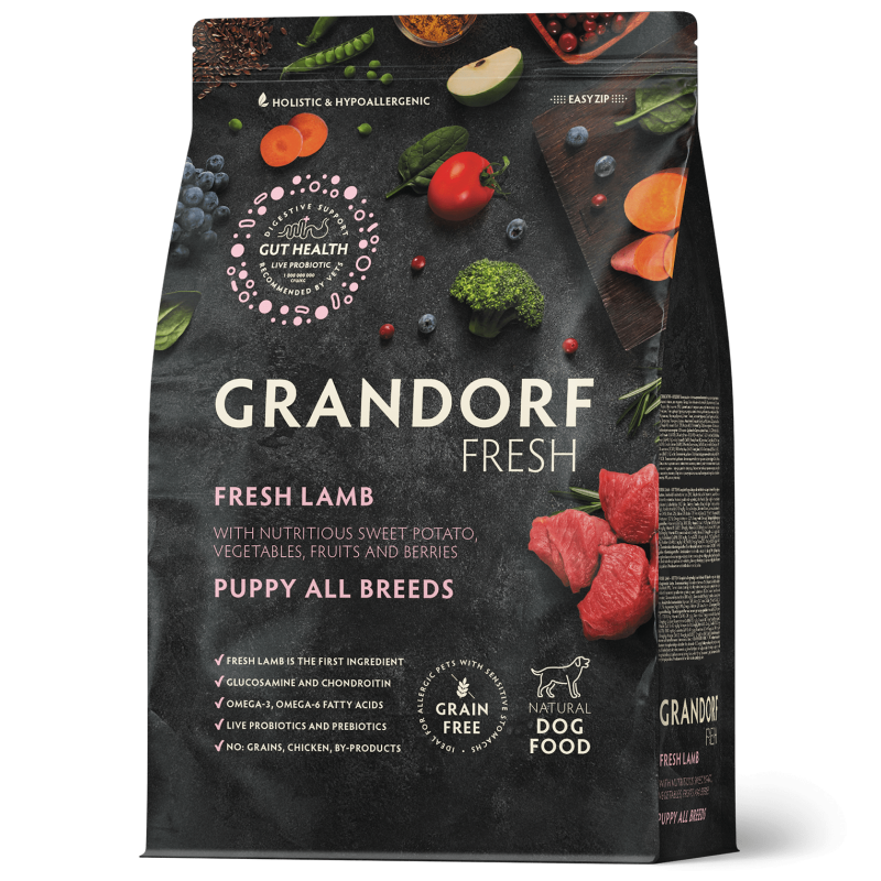 3кг Корм GRANDORF DOG Fresh Lamb&Sweet Potato Puppy беззерновой гипоаллергенный для щенков всех пород с 3 недель, беременных и кормящих собак, Ягненок с Бататом