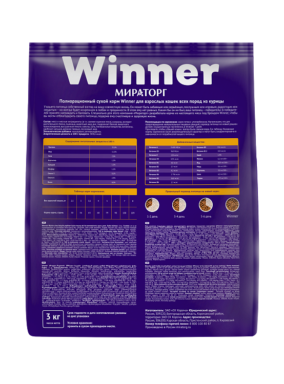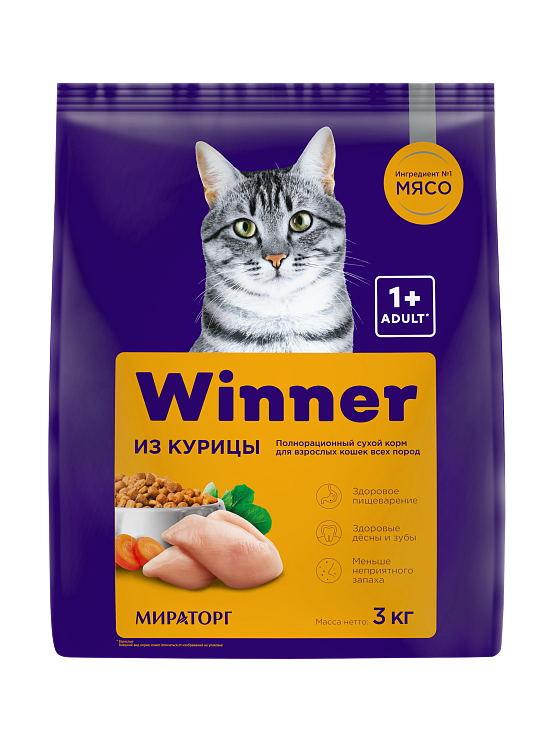 3кг Корм Мираторг Winner для взрослых кошек всех пород с Курицей