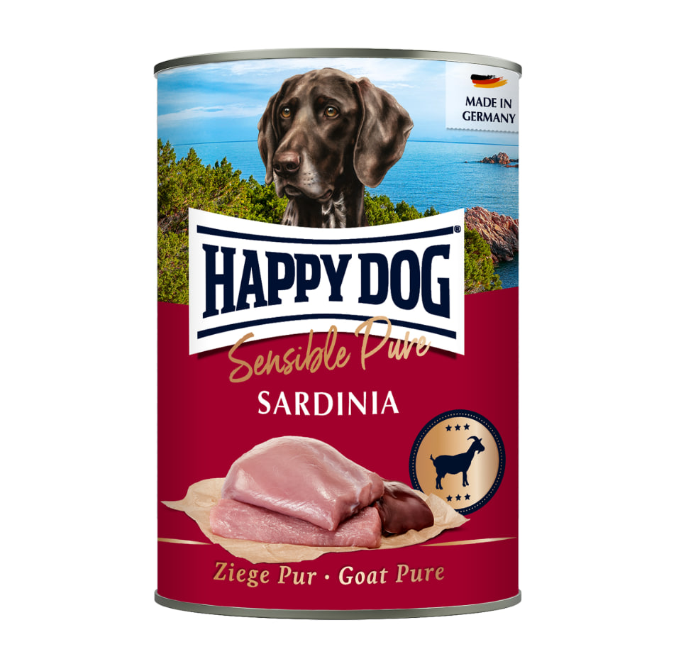 400г Консервы Happy Dog Sensible Pure Sardinia беззерновой для взрослых собак с пищевой непереносимостью из мяса Козы