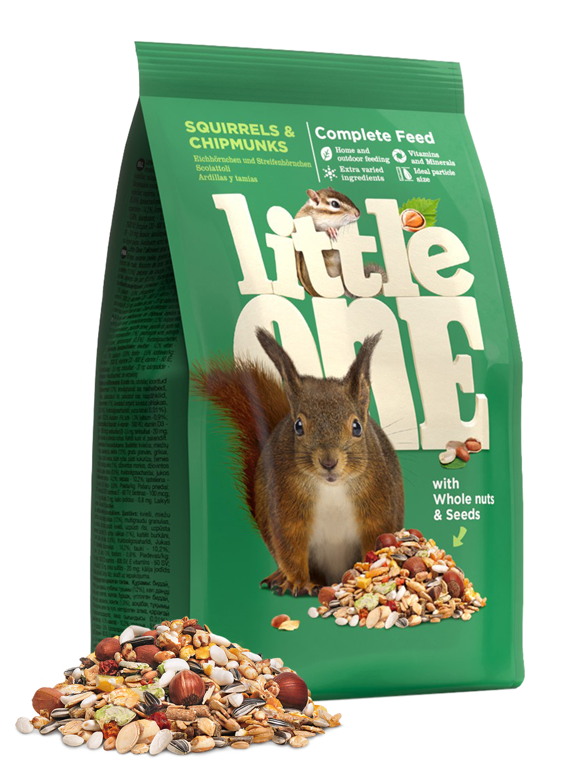 Все компоненты корма тщательно подобраны с учетом размеров белок и бурундуков, а состав обогащен витаминно-минеральным комплексом и сбалансирован в соответствии с потребностями питания. Корм идеально подойдет не только для домашнего кормления, но и для круглогодичного подкармливания животных в природе. Поедание цельных орехов и семян, входящих в состав корма, стимулирует естественное поведение. Также эти ингредиенты являются отличным источником дополнительной энергии.