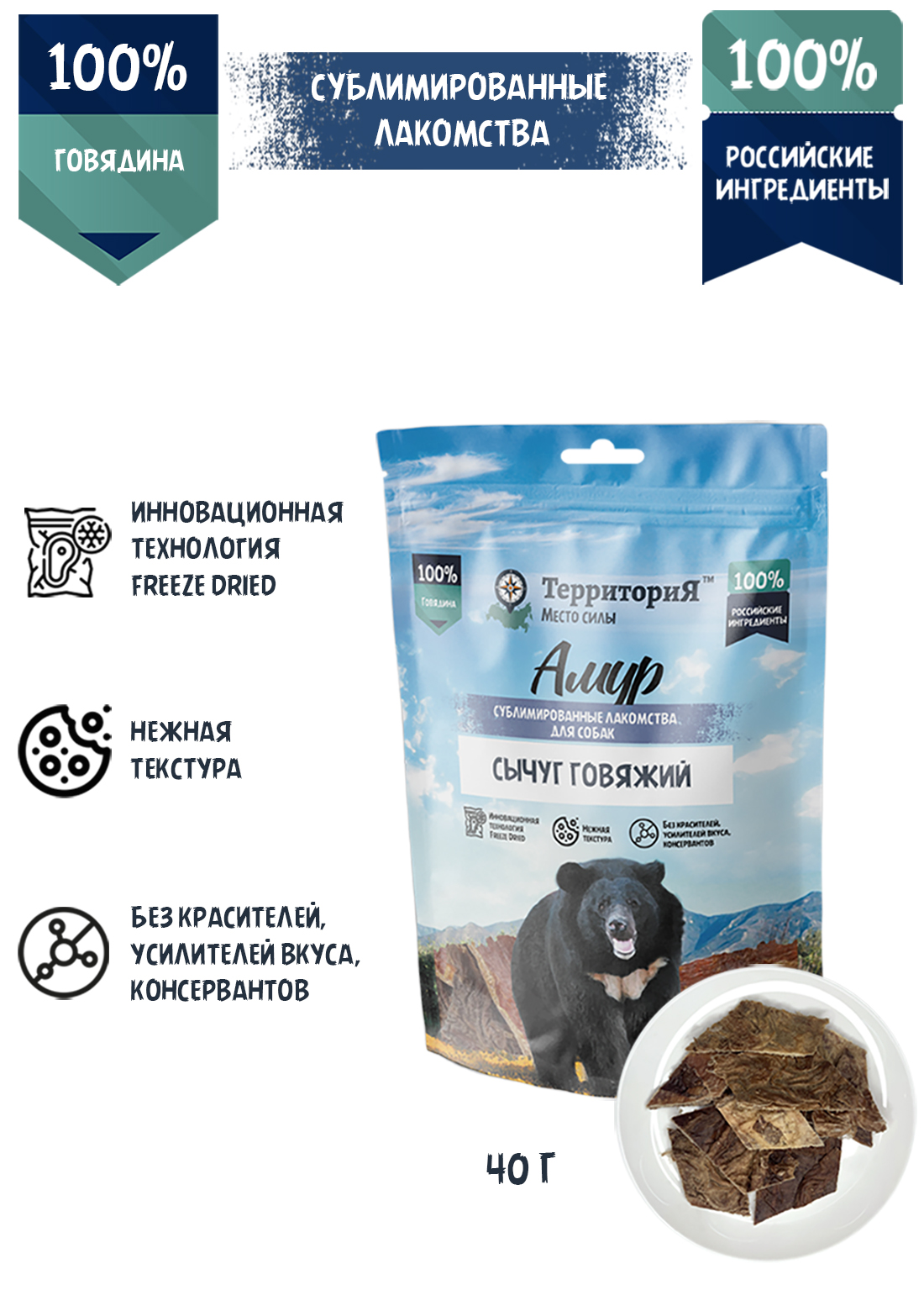 40гр Лакомство ТерриториЯ Амур Сычуг говяжий сублимированный для собак