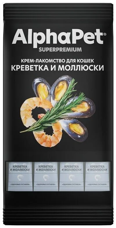 Главная Каталог Зоотовары Корм для кошек Лакомства 48гр Крем-лакомство AlphaPet Superpremium для кошек с Креветкой и моллюском