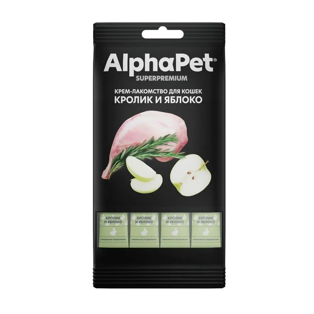 Главная Каталог Зоотовары Корм для кошек Лакомства 48гр Крем-лакомство AlphaPet Superpremium для кошек с Кроликом и яблоком