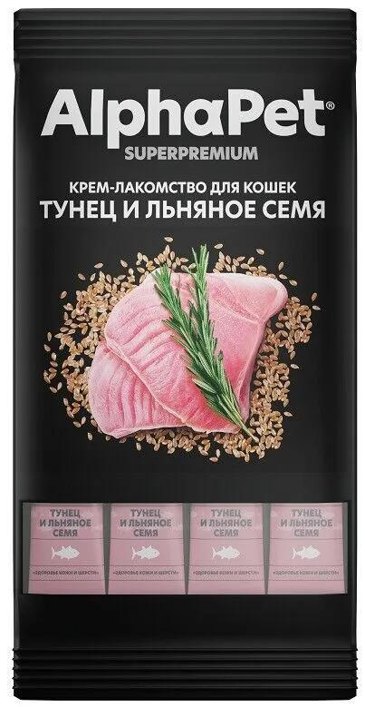 Главная Каталог Зоотовары Корм для кошек Лакомства 48гр Крем-лакомство AlphaPet Superpremium для кошек с Тунцом и льняными семенами