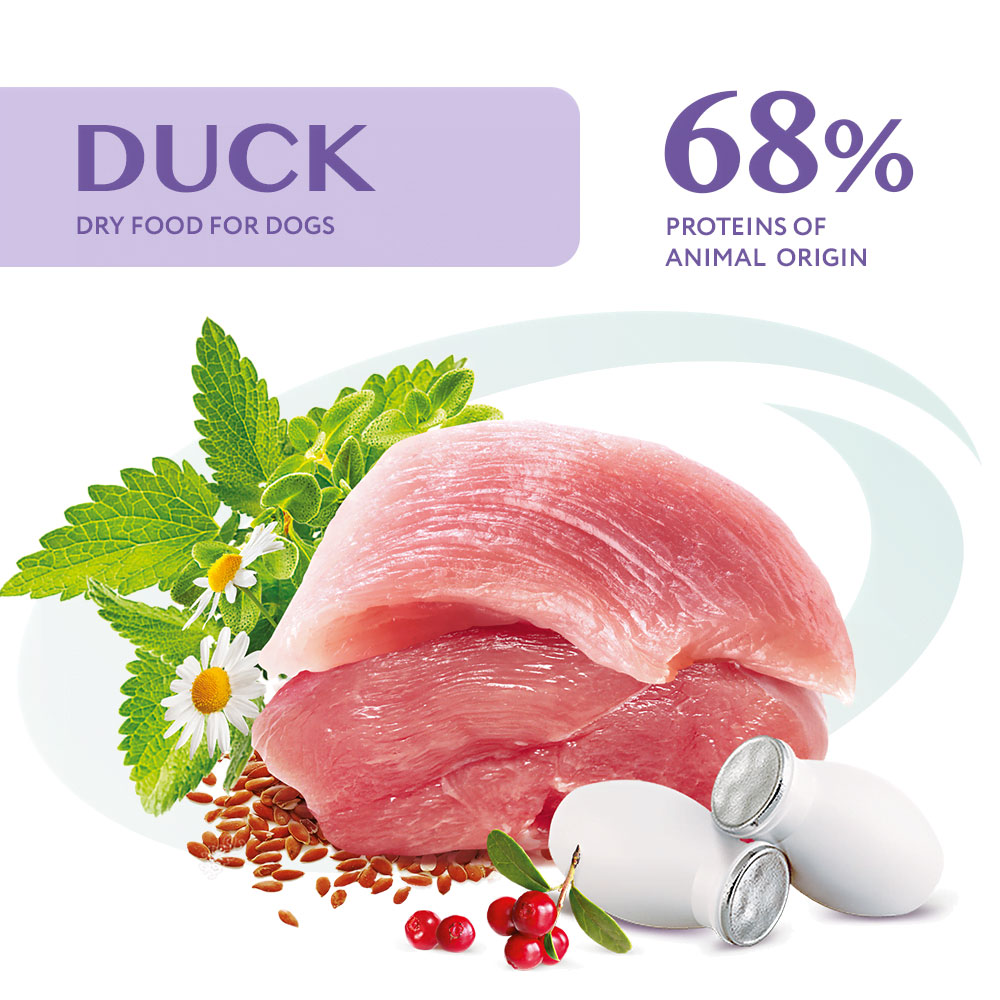 Состав: Дегидратированный Протеин Утки, Не Менее 22 %, Рис, Кукуруза, Куриный Жир, Кукурузный Белок, Бескостное Мясо Утки 5 %, Протеин Гидролизованный Животный 5 %, Рис Коричневый, Масло Лосося, Минералы, Cемена Льна 1,23 %, Мякоть Свеклы, Пивные Дрожжи, Клюква 0,2 %, Масло Огуречника, Бета-1,3/1,6-глюканы 0,05 %, Actigen ® (источник Пребиотик — Мананоолигосахариды) 0,04 %, Бархатцы (источник Лютеина) 0,04 %, Корень Лопуха, Корень Алтея, Цветы Ромашки 0,03 %, Крапива 0,03 %, Экстракт Юкки, Чабрец 0,015 %.