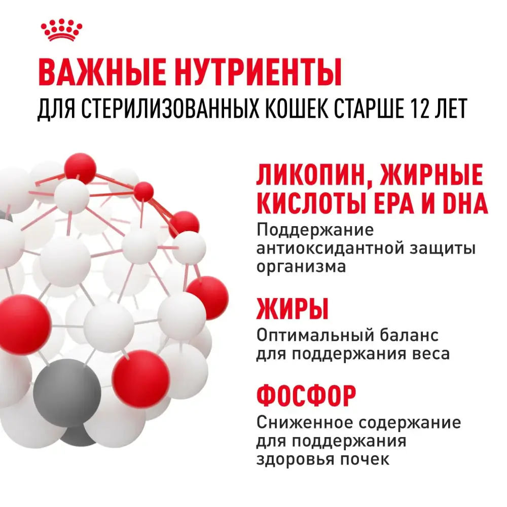 Сухой корм Royal Canin Ageing +12 полностью соответствует специфическим потребностям в питании пожилых кошек (с 12 лет):