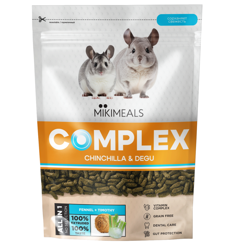 Главная Каталог Зоотовары Корм для грызунов Корм 500гр MIKIMEALS Complex Корм для Шиншилл и Дегу