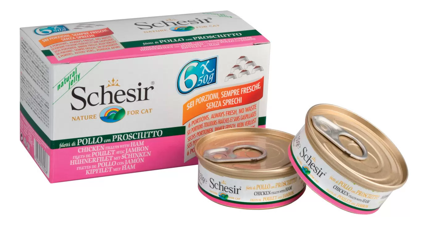 50г Консерва Schesir для кошек Курица с ветчиной