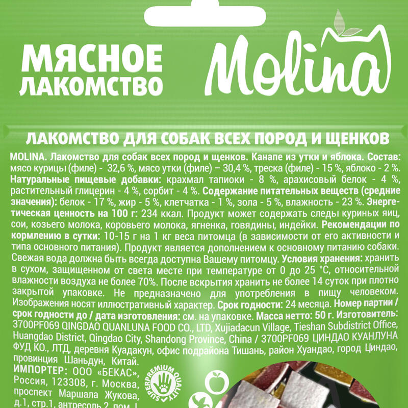 50гр Лакомство Molina для собак всех пород и щенков "Канапе из утки и яблока"