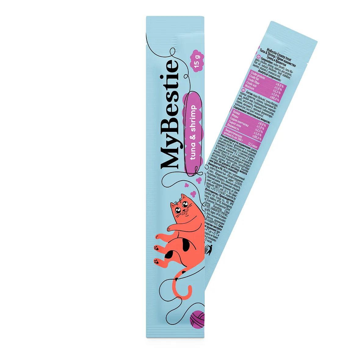 Главная Каталог Зоотовары Корм для кошек Лакомства 5*15г Крем-лакомство MyBestie для кошек Тунец и Креветки