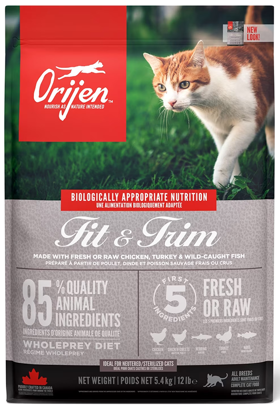 ORIJEN CAT FIT & TRIM - оптимизирован для поддержания оптимальной физической формы с использованием качественных ингредиентов животного происхождения, таких как свежая или сырая курица, индейка и рыба.