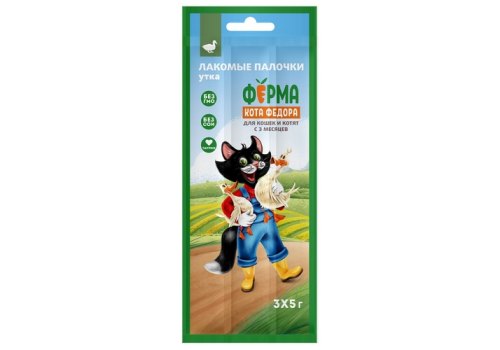 5гр*3шт Лакомство Ферма кота Фёдора "Палочки" для кошек и котят с 3 месяцев с Уткой