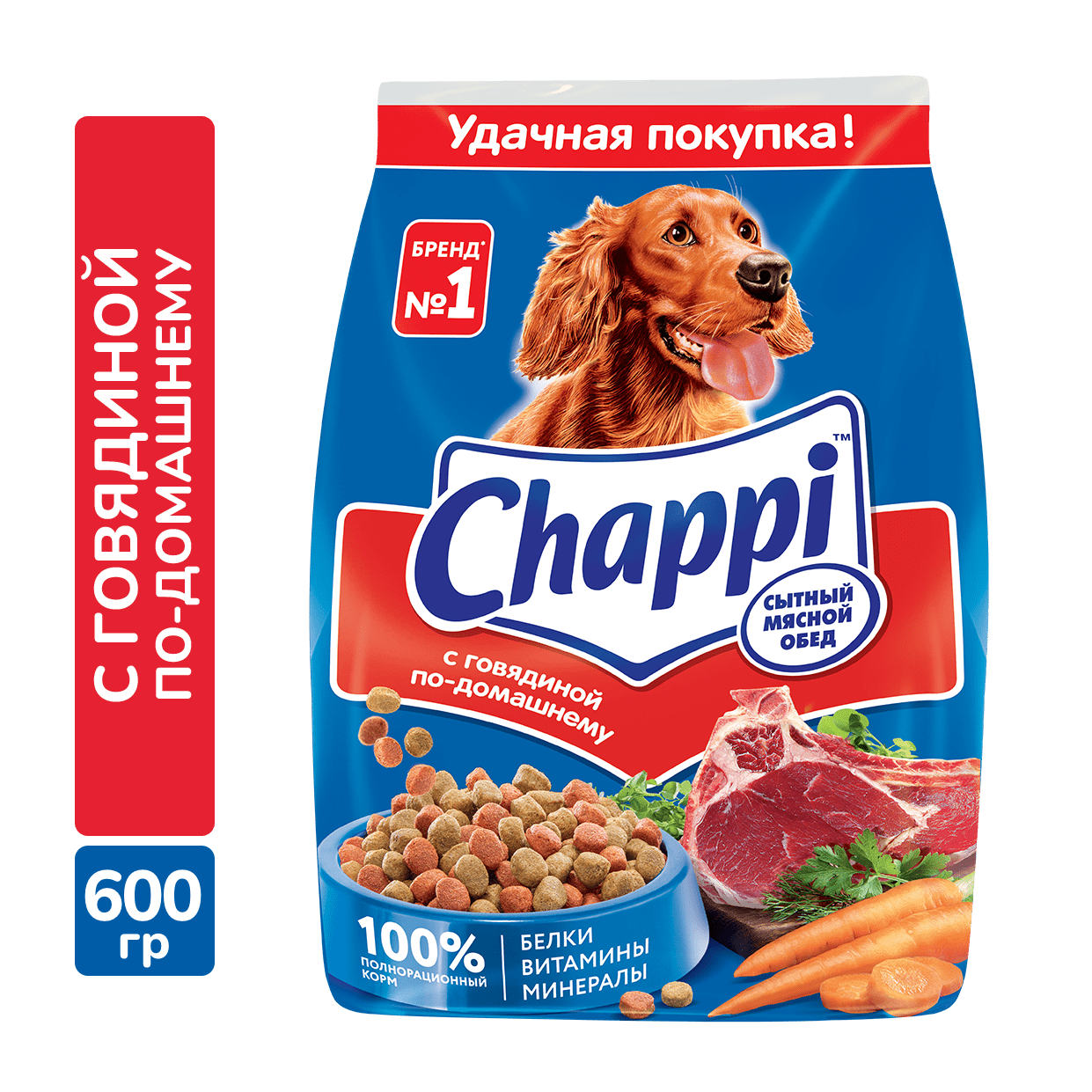 Главная Каталог Зоотовары Корм для собак Сухой корм 600гр Корм CHAPPI для взрослых собак с Говядиной по-домашнему