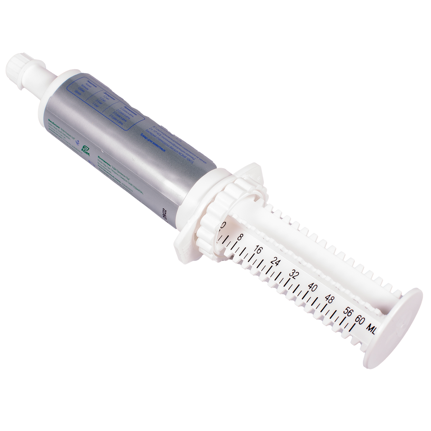 Для введения нужного количества продукта используйте ручное колесико на поршне шприца. Вращайте колесико, пока оно не окажется справа от числа, обозначающего желаемое количество пасты, которую необходимо ввести животному.