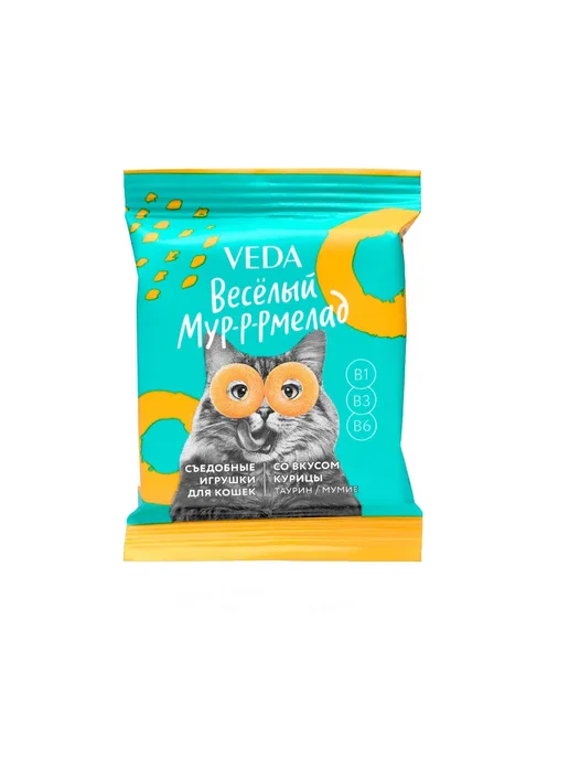 Главная Каталог Зоотовары Корм для кошек Лакомства 6гр Лакомство VEDA Весёлый мур-р-рмелад для кошек с Курицей