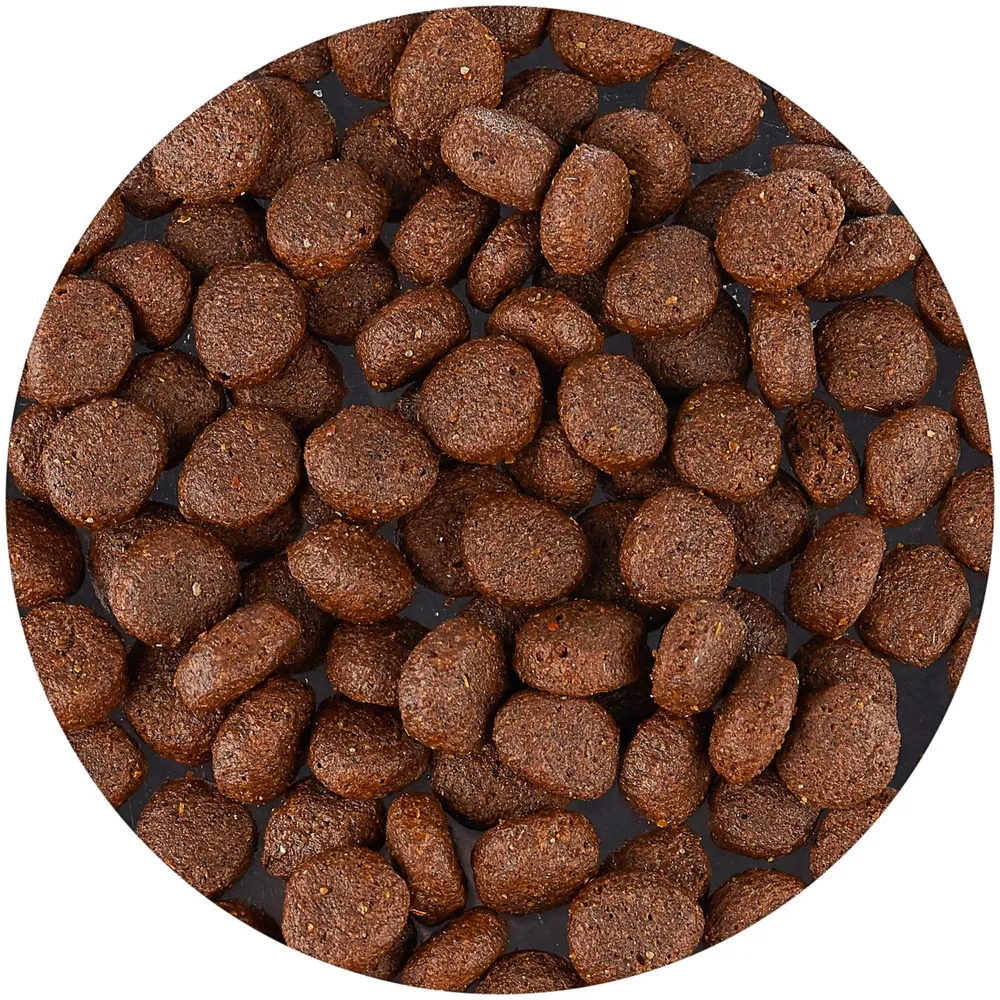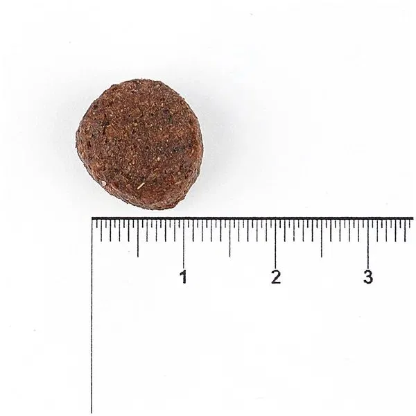 Состав: свежая форель (35%), дегидрированное утиное мясо (25%), горошек, картофель, куриный жир (10%), боб обыкновенный, льняное семя (2,5%), сушеная мякоть свеклы, пивные дрожжи, мука из морских водорослей (0,3%), фруктолигосахариды FOS (0,2%), дрожжевые продукты (MOS 0,2%), юкка Шидигера (0,03%), расторопша пятнистая (Silybum marianum L.) (0,02%), дегидрированный гранат (Punica granatum) (0,02%), дегидрированное яблоко (Malus pumila) (0,02%), дегидрированные плоды шиповника (Rosa Canina L., R. Pendulina L.) (0,002%), глюкозамина, хондроитина сульфат, экстракт розмарина. Пищевые добавки на кг: Витамин A 21000 UI, Витамин D3 1400 UI, 3a700 Витамин E 180 мг, E4 пентагидрат сульфата меди 59 мг, E1 карбонат железа 62 мг, E5 оксид марганца 77 мг, E6 моногидрат сульфата цинка 186 мг, E2 йодистый калий 4,85 мг, E8 селенит натрия 0,35 мг. Аналитические компоненты: Влага 8%, сырой белок 30%, сырые масла и жиры 20%, сырая зола 8,4%, сырая клетчатка 2,4%.
