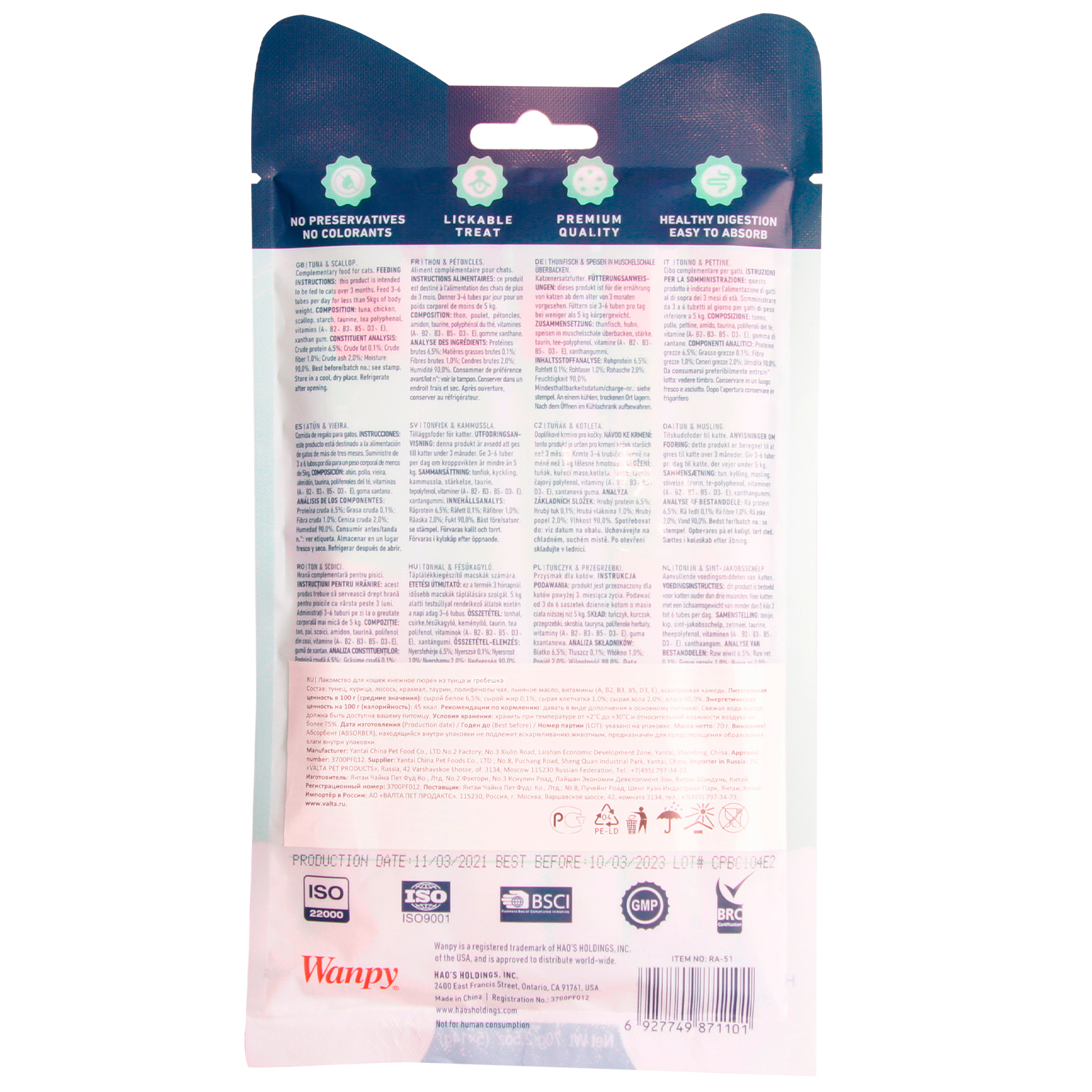 70г Лакомство Wanpy Cat для кошек нежное пюре из Тунца и Гребешка