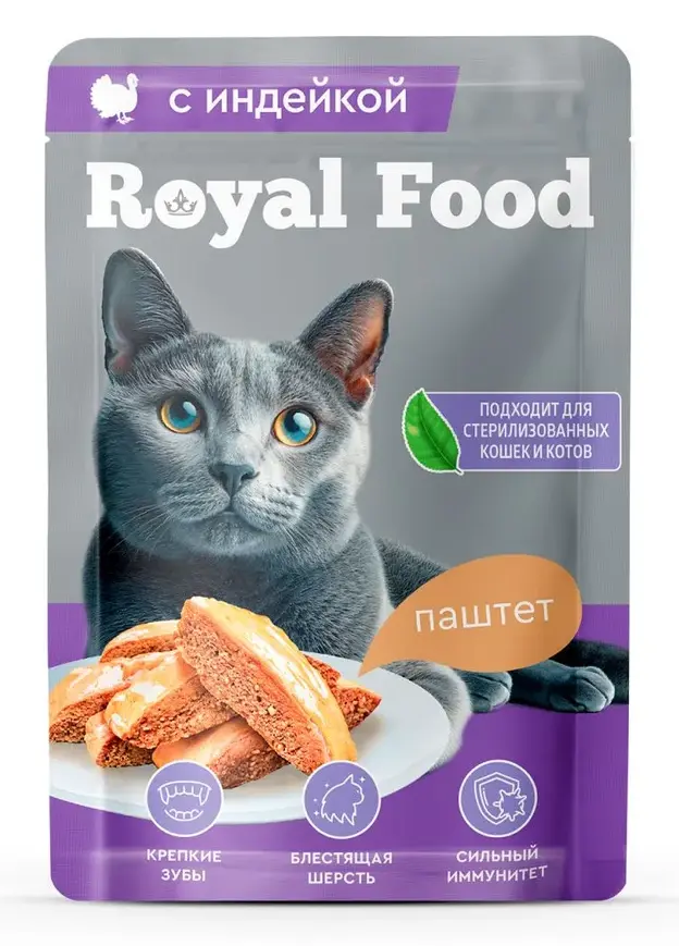 75г Влажный корм ROYAL Food для взрослых кошек с Индейкой, паштет