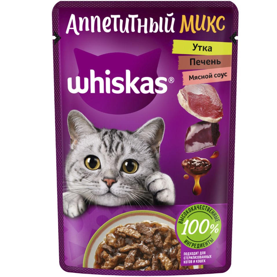 Утка, печень и мясной соус — сразу всё, о чём мечтала ваша кошка, в новой коллекции сбалансированных блюд WHISKAS. Подходит для стерилизованных котов и кошек.