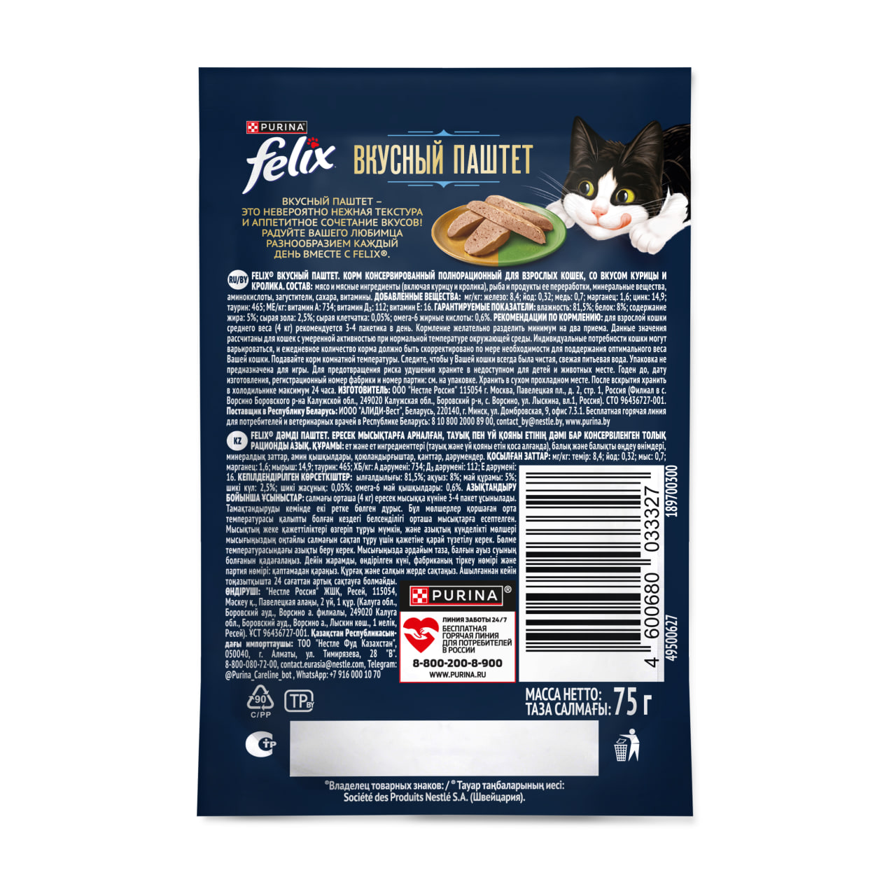 FELIX® Вкусный паштет – это невероятно нежная текстура и аппетитное сочетание вкусов! Радуйте Вашего любимца разнообразием каждый день вместе с FELIX®.