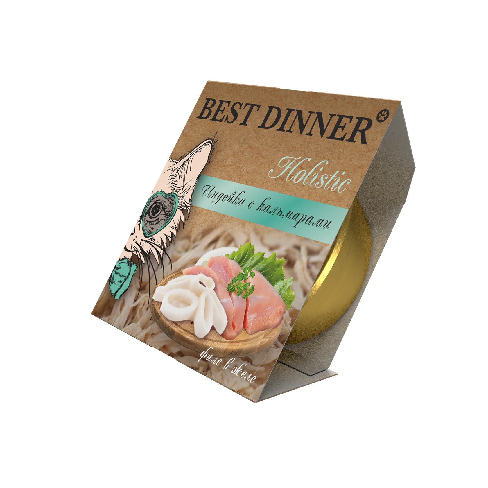 Best Dinner Holistic Влажный консервированный полноценный корм для взрослых и стерилизованных кошек. Мясные волокна в желе "Индейка с кальмарами"