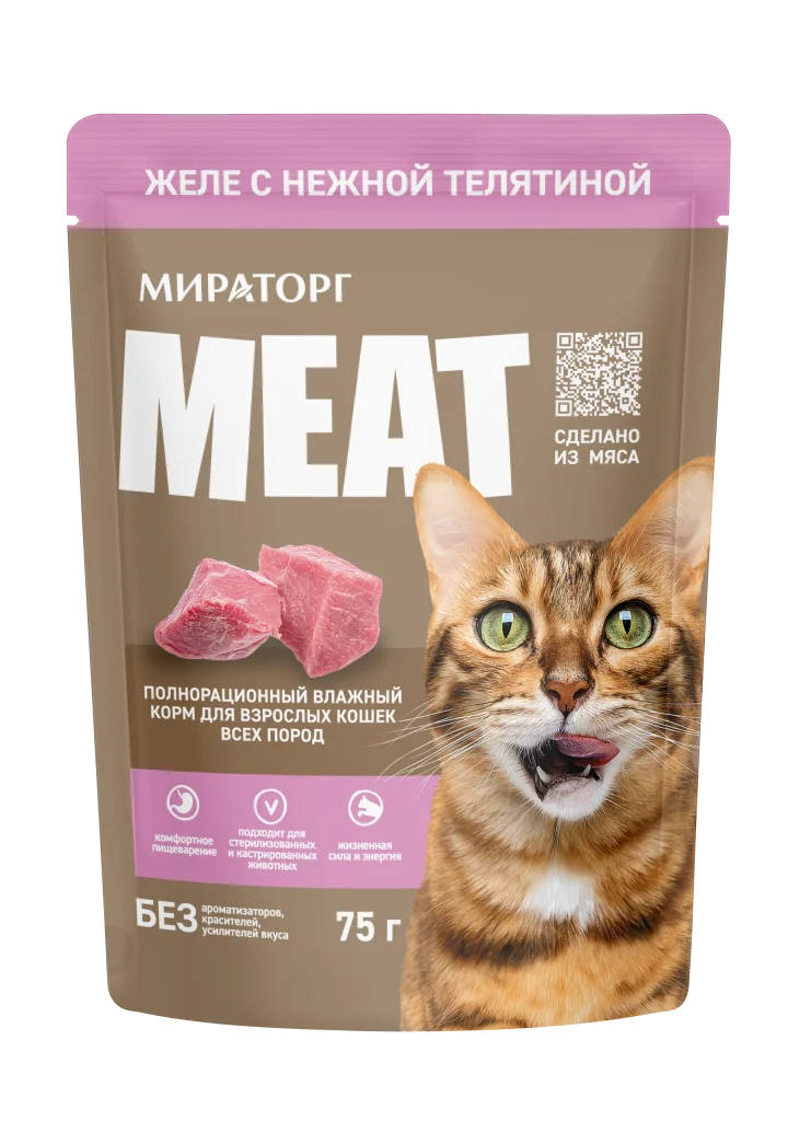 Корм консервированный полнорационный MEAT для взрослых кошек всех пород «Желе с нежной телятиной»