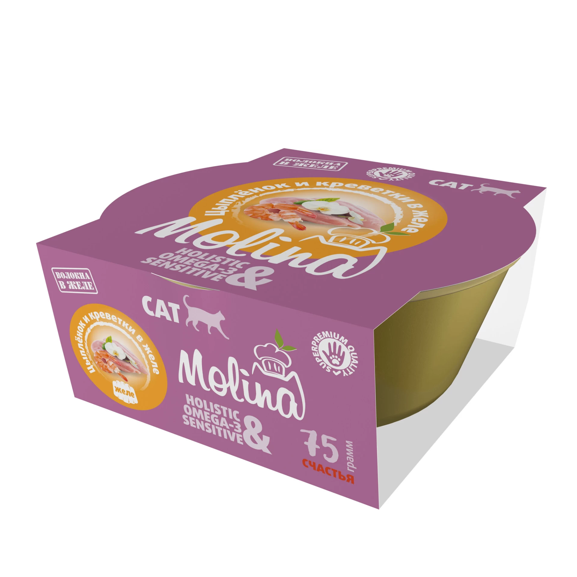 75гр Влажный корм Molina для кошек Цыплёнок и креветки в желе