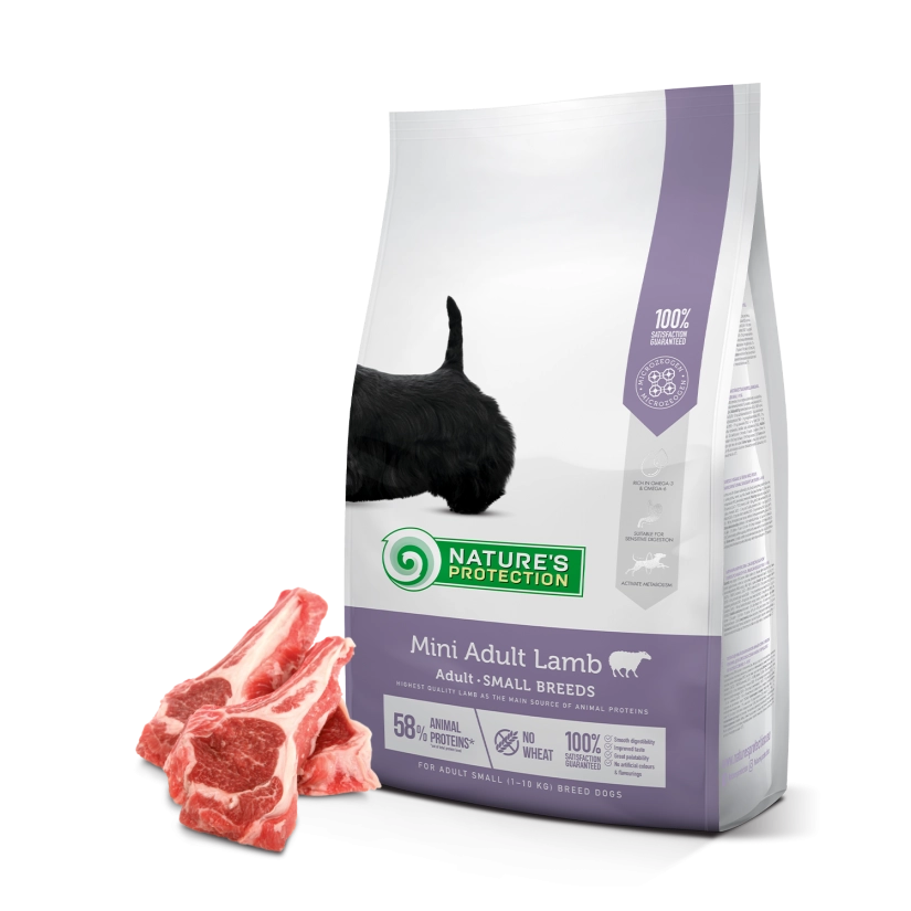 Nature's Protection Adult Mini Lamb — это сухой корм для взрослых собак мелких пород (1-10 кг).