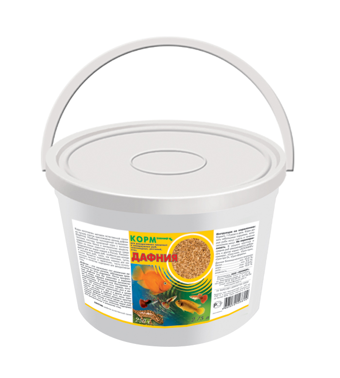 Корм изготовлен методом естественной сушки из лучших сортов пресноводных рачков дафнии (Daphnia).Наиболее полноценный по биохимическому составу природный корм с высоким содержанием белка и минеральных веществ.