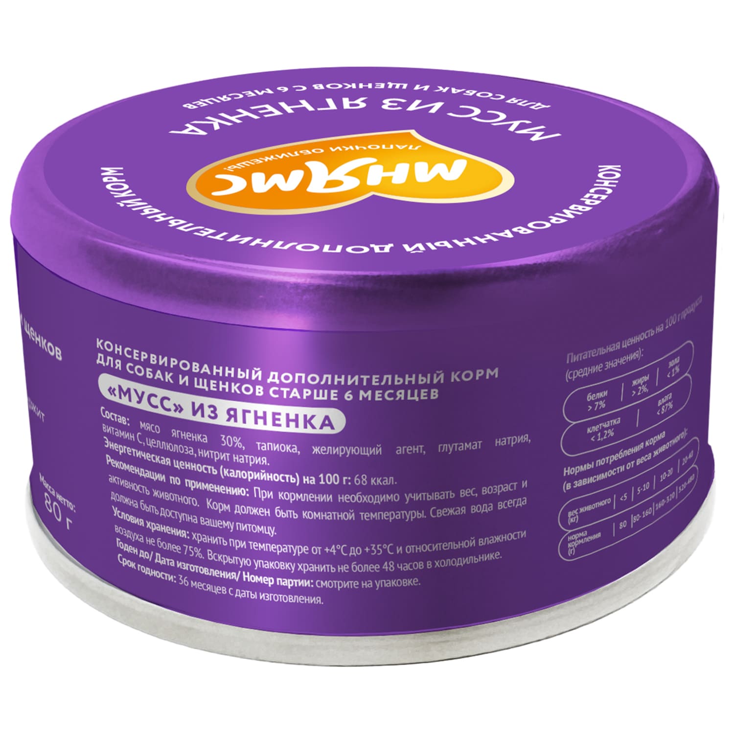 Прекрасно подходит пожилым собакам, а также питомцам с чувствительным пищеварением и аллергией на курицу или злаки в составе кормов. «Мнямс» консервированный дополнительный корм для собак и щенков старше 6 месяцев «мусс» из ягненка гарантирует, что ваш питомец получит только качественный и вкусный продукт, который прекрасно разнообразит рацион любимца, поддержит его здоровье и жизненную энергию.