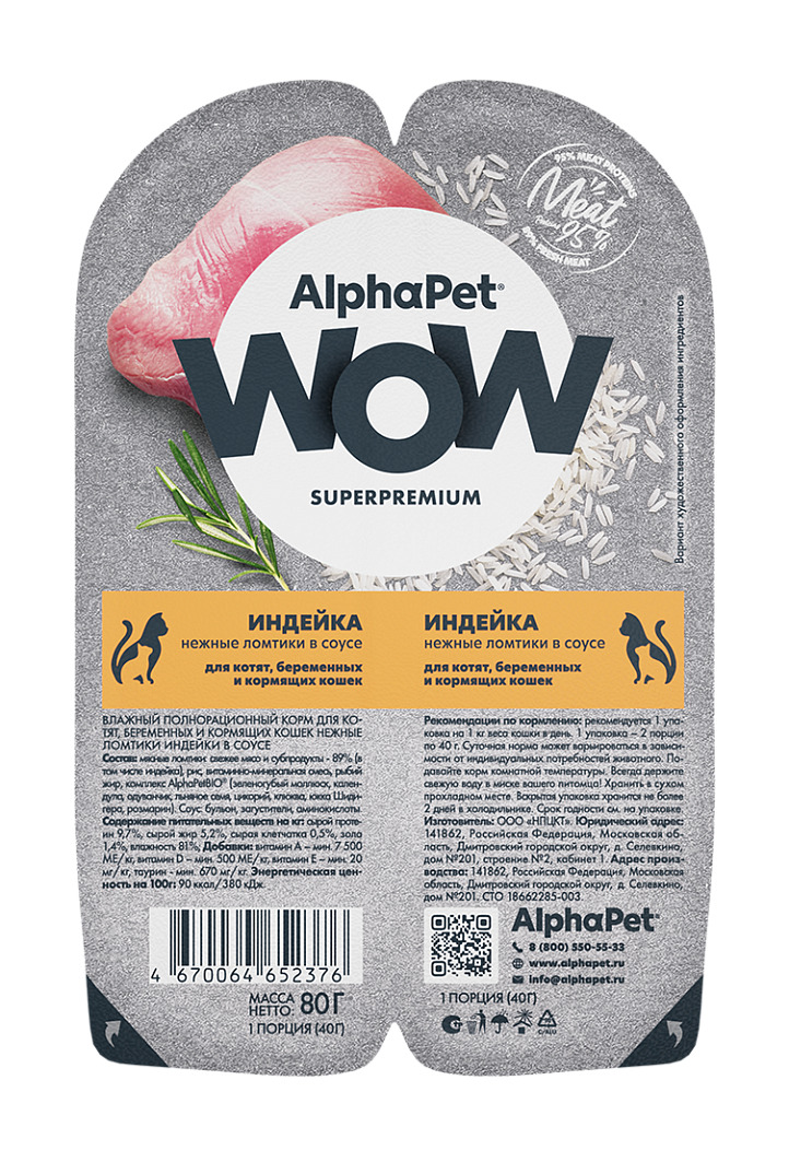 80г Влажный корм AlphaPet WOW для стерилизованных кошек с Индейкой нежные ломтики в соусе