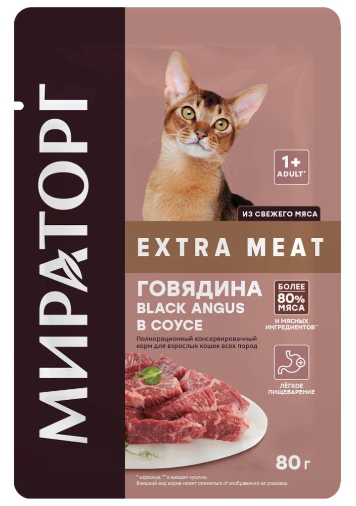 80гр Влажный корм Мираторг Extra Meat для взрослых кошек, соус с Говядиной