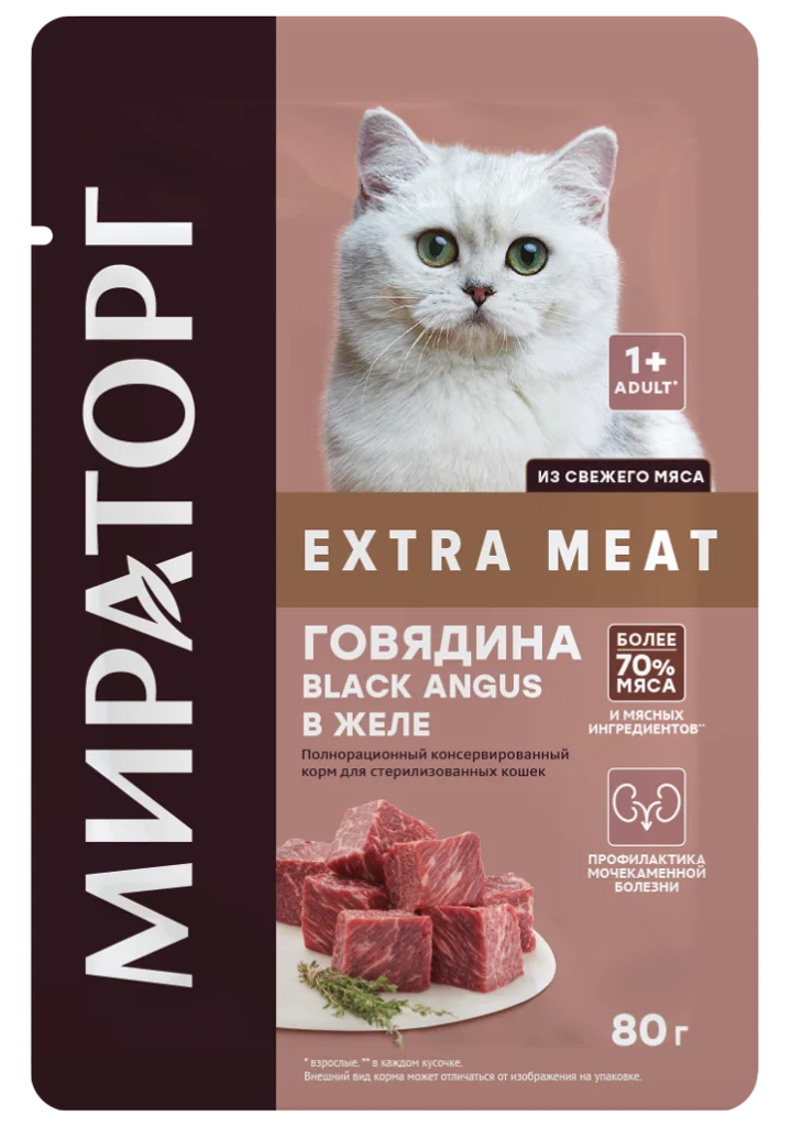 80гр Влажный корма Мираторг Extra Meat для стерилизованных кошек, желе с Говядиной