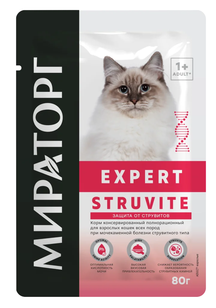 80гр Влажный корм Мираторг Expert Struvite полнорационный для взрослых кошек всех пород при мочекаменной болезни струвитного типа с Курицей