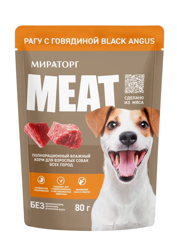 80гр Влажный корм Мираторг Meat Black Angus для взрослых собак всех пород, рагу с Говядиной