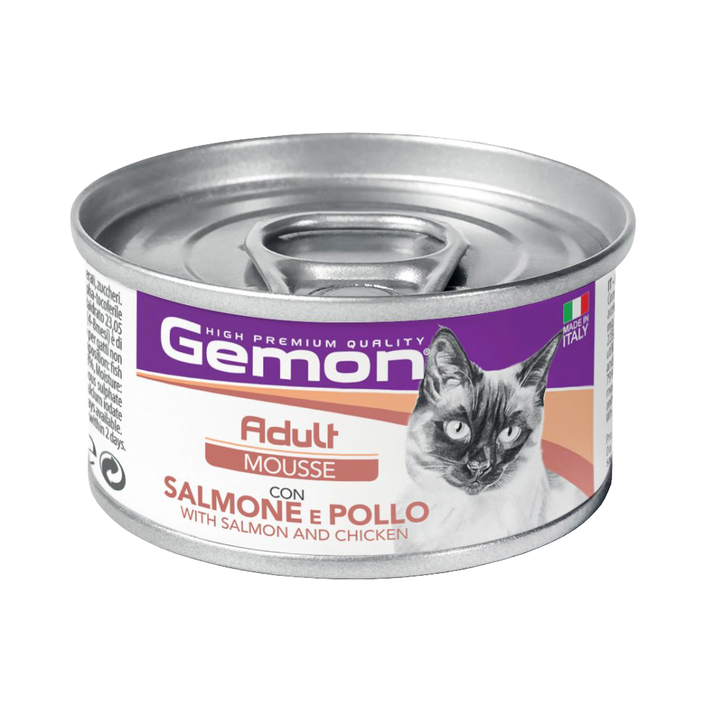 Gemon Adult Mousse с лососем и курицей — это полноценный корм для взрослых кошек, созданный для обеспечения всех питательных веществ, необходимых для ежедневного поддержания жизнедеятельности наших четвероногих друзей.