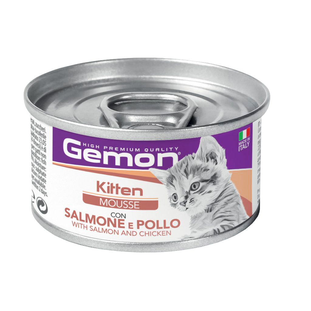 GEMON MOUSSE WITH SALMON AND CHICKEN — это полноценный корм для растущих котят, созданный для обеспечения всех необходимых питательных веществ для ежедневной жизнедеятельности наших четвероногих друзей.