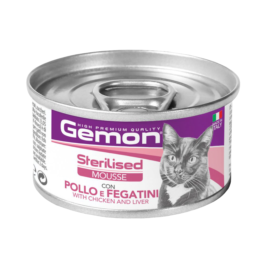 GEMON MUSSE С КУРИЦЕЙ И ПЕЧЕНЬЮ — это полноценный корм для стерилизованных взрослых кошек, разработанный для обеспечения всех необходимых питательных веществ для ежедневного поддержания жизнедеятельности наших четвероногих друзей.