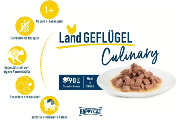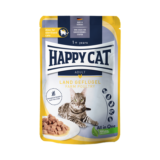 85гр Влажный корм Happy Cat Culinary Meat in Sauce LandGeflügel полнорационный беззерновой для стерилизованных кошек с мясными кусочками Птицы в соусе