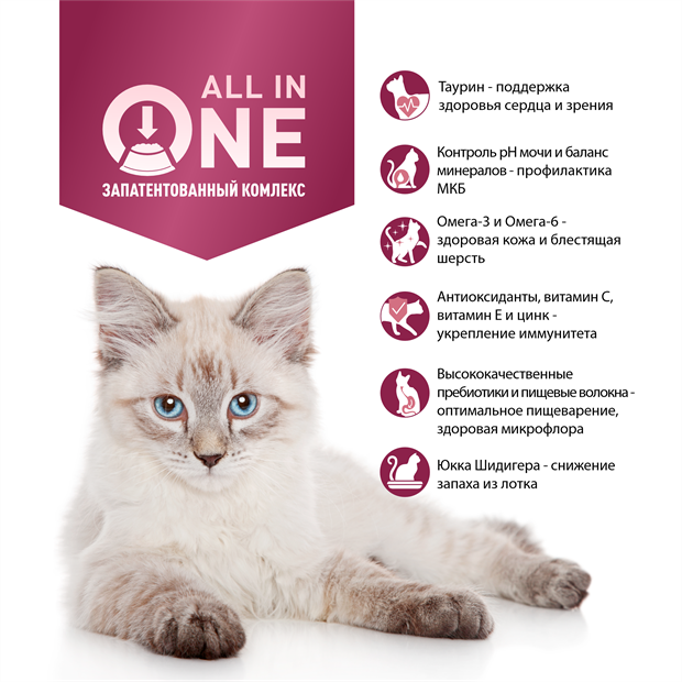 Витамины/кг: Витамин D3 250 МЕ, Витамин Е 15 мг, Биотин 20 мкг, Таурин 445 мг