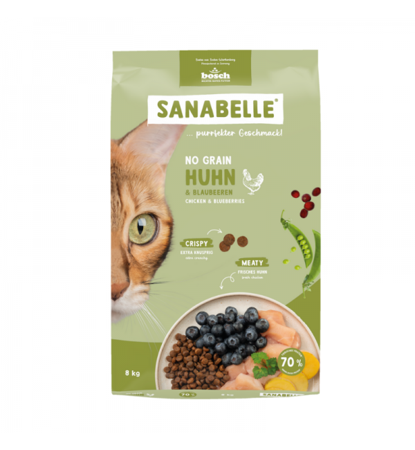 8кг Корм Bosch Sanabelle No Grain chicken & blueberries Life беззерновой для взрослых кошек с Курицей и черникой