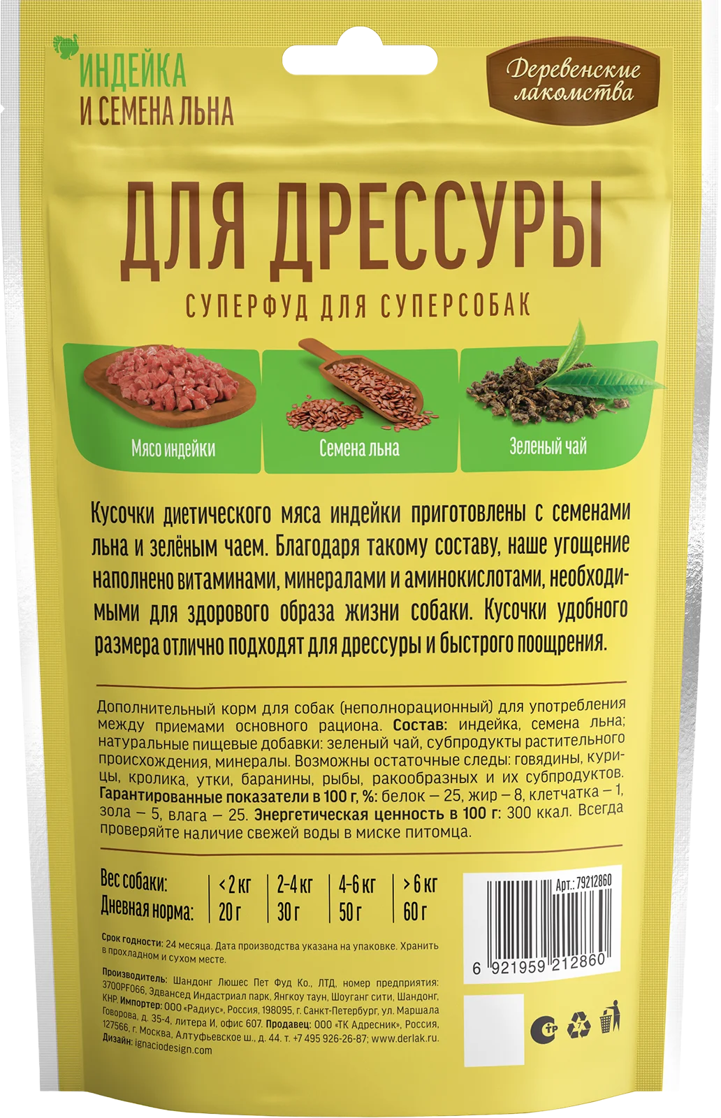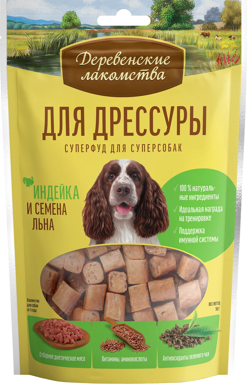 90г Лакомства "Деревенские лакомства", "ДЛЯ ДРЕССУРЫ", Индейка и семена льна