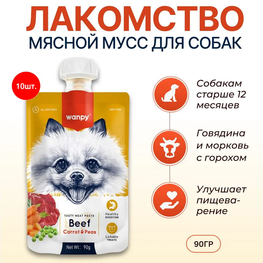 90гр Лакомство WANPY для собак мясной мусс из Говядины и моркови с горохом