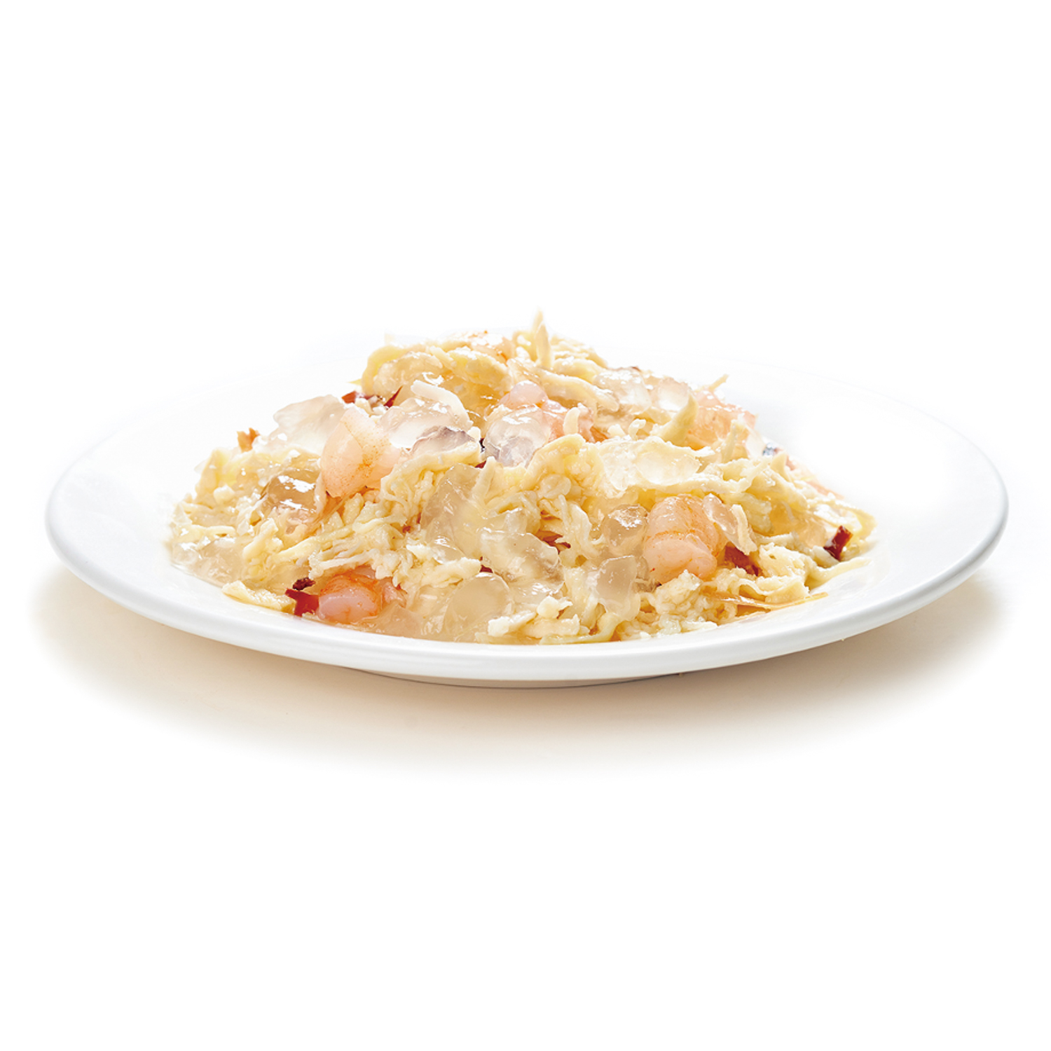 Состав: курица, креветки, крахмал, каррагинан, соль, олигосахариды, таурин, экстракт чая, витамины (A, B2, B3, B5, D3, E), карбонат кальция.