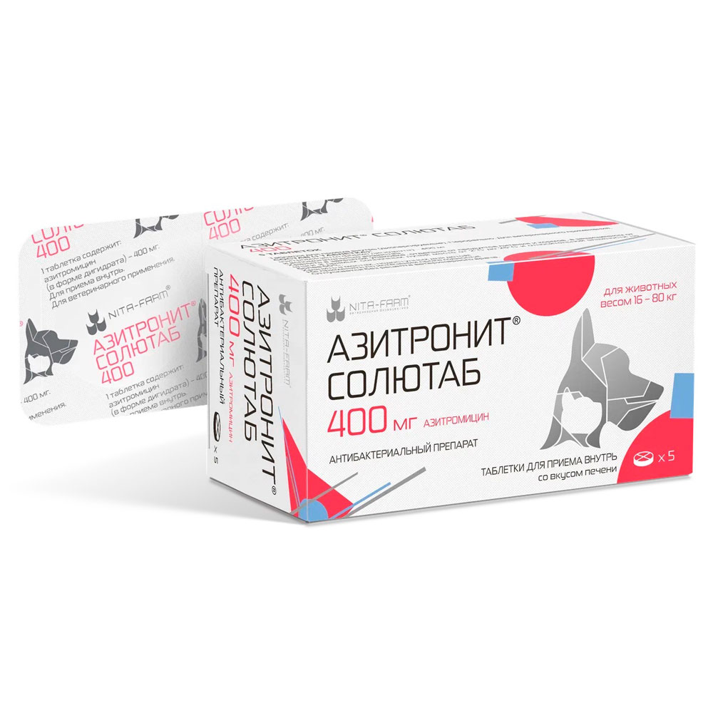 - Азитронит® Солютаб 400 – животным массой тела от 20 кг.