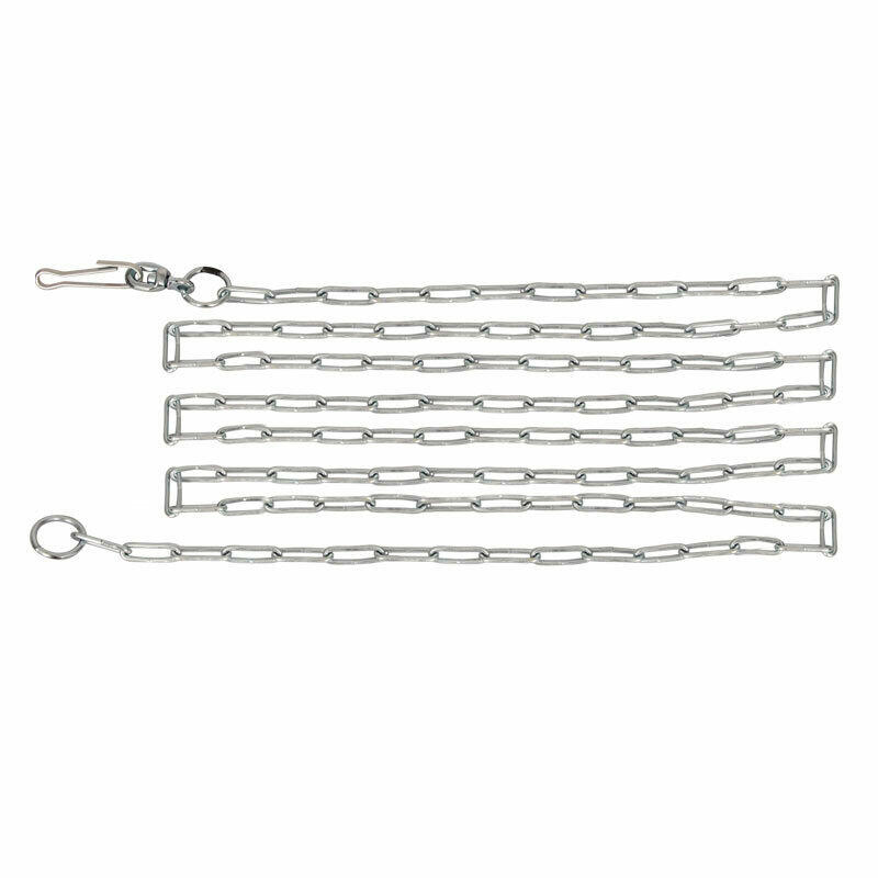Эта стальная привязочная цепь для собак способна выдерживать рывки до 200 кг. Прочная и долговечная, имеет надежное крепление и карабин, который обеспечит быстрое закрепление цепи на той территории, где необходимо обеспечить охрану. Расположенное с другого конца изделия кольцо можно закрепить на вбитом в землю штопор-держателе или импровизированном столбе.
