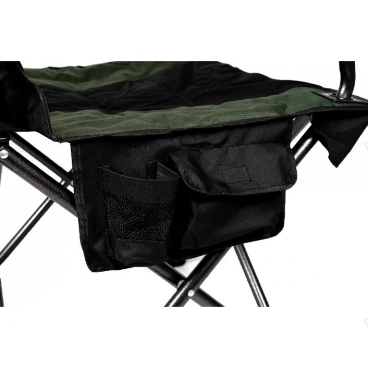 Раскладывается кресло просто, подлокотники в задней части фиксируется, для большей жесткости и надежности конструкции. В собранном положении кресло хорошо фиксируется и, благодаря конструкции, очень устойчиво. Перевернуть кресло практически невозможно, широко расставленные опоры имеют и достаточно большую площадь поверхности, чтобы ножки не могли погружаться в песок. Дополнительно предусмотрена сумка с двумя карманами сбоку, для хранения бутылки или мелочей.
