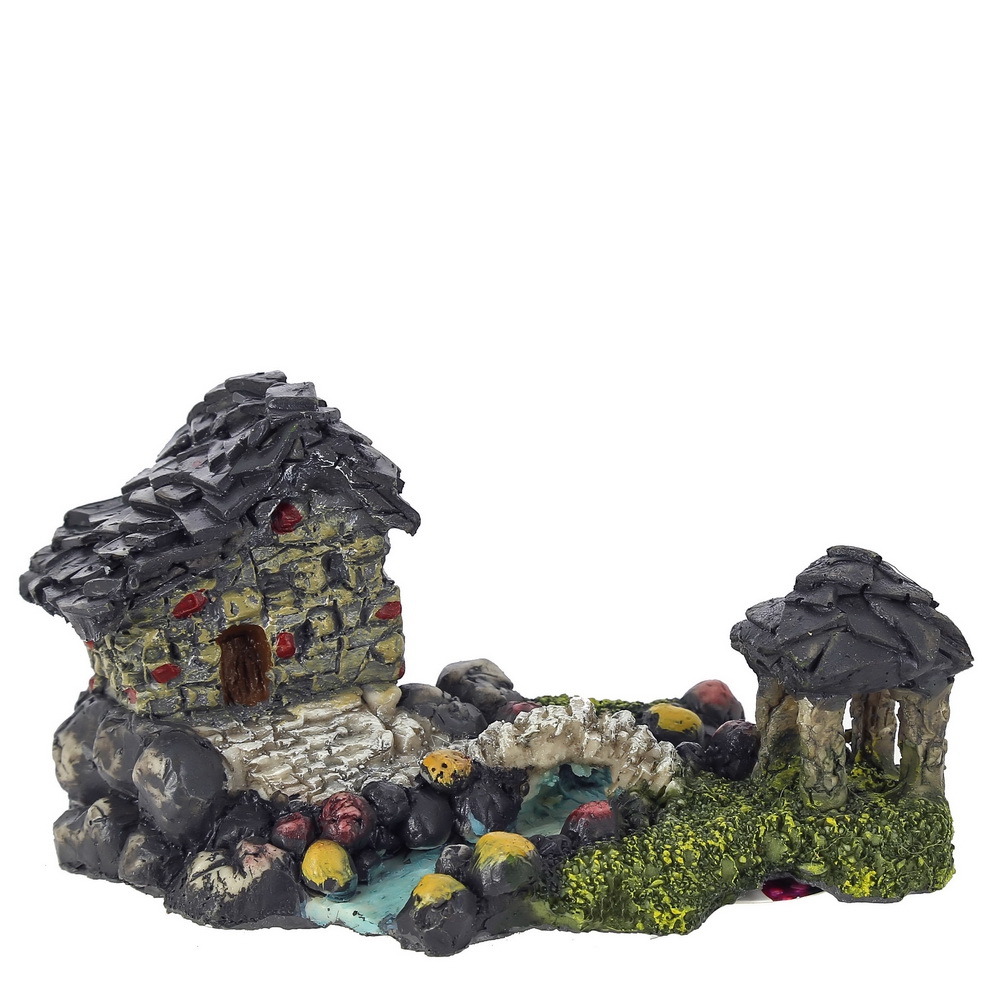 Грот Aqua-khow "Хижина с мостом" для аквариума, 14*9,0*7,5см