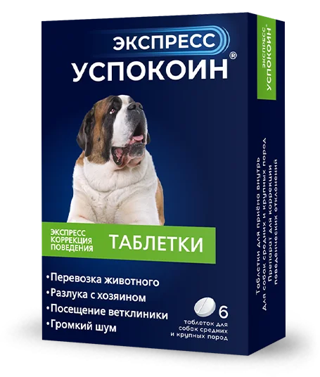 Экспресс Успокоин – единственный на российском рынке успокоительный препарат для быстрого и эффективного решения поведенческих проблем у собак в стрессовых ситуациях: