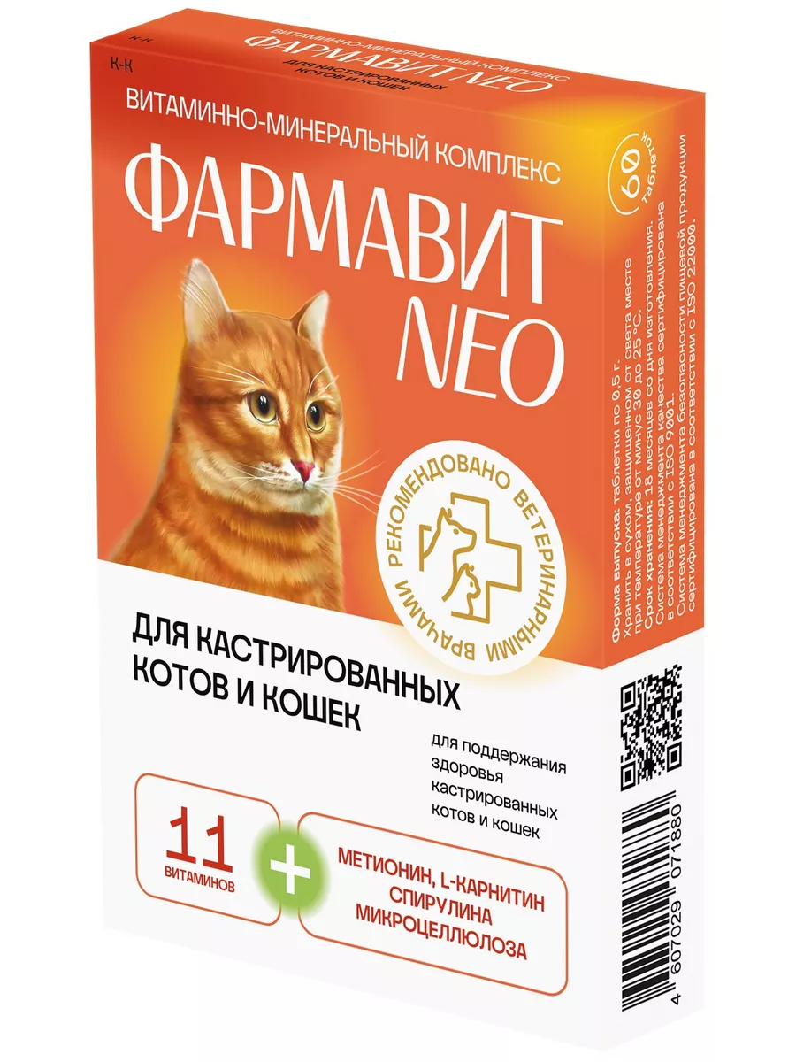 Фармавит Neo – комплекс витаминов, аминокислот и минералов, подобранных с учетом физиологических особенностей кастрированных котов и кошек.
